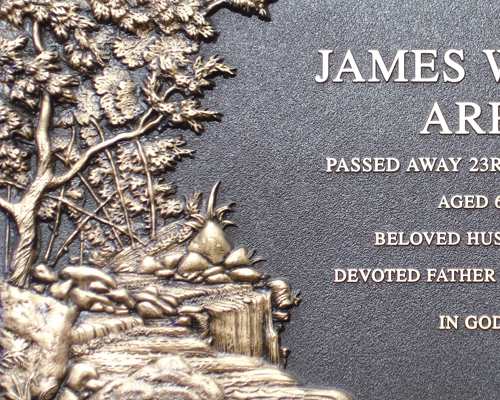 Flat Relief Emblems are computer-designed and can be sized easily to fit any application. Flat Relief can be the same colour as the rest of the plaque or enhanced by colour, such as a red rose with green leaves, or a blue or yellow butterfly.